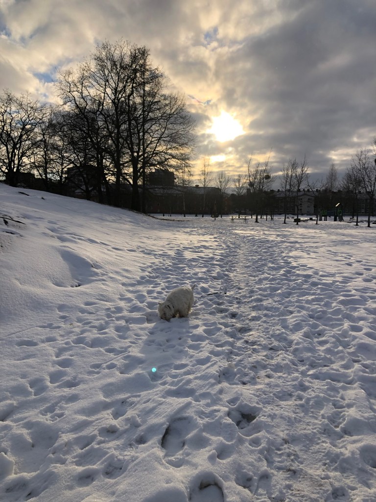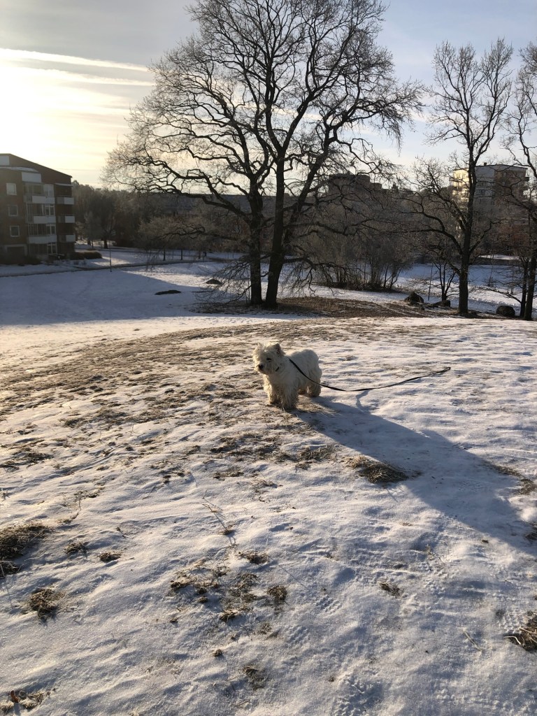 Middagspromenad – vi tar korta turer – kallt om tassarna 🐾🐾