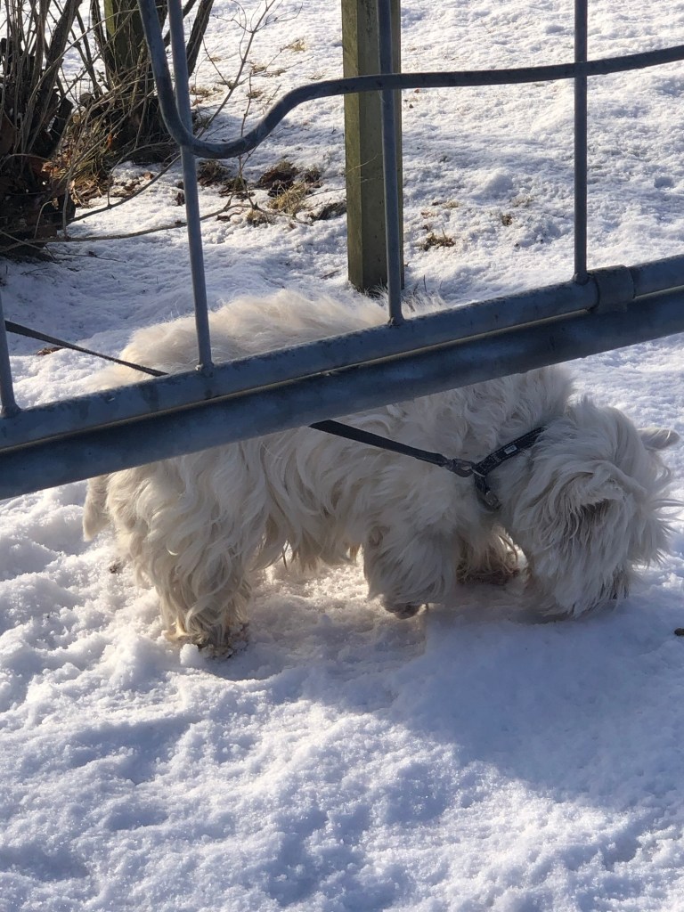 Älskar första solstrålarna,som värmer och ger energi☀️☀️☀️ Milou har kammat sig själv, rullat runt i snön 🐻❄️