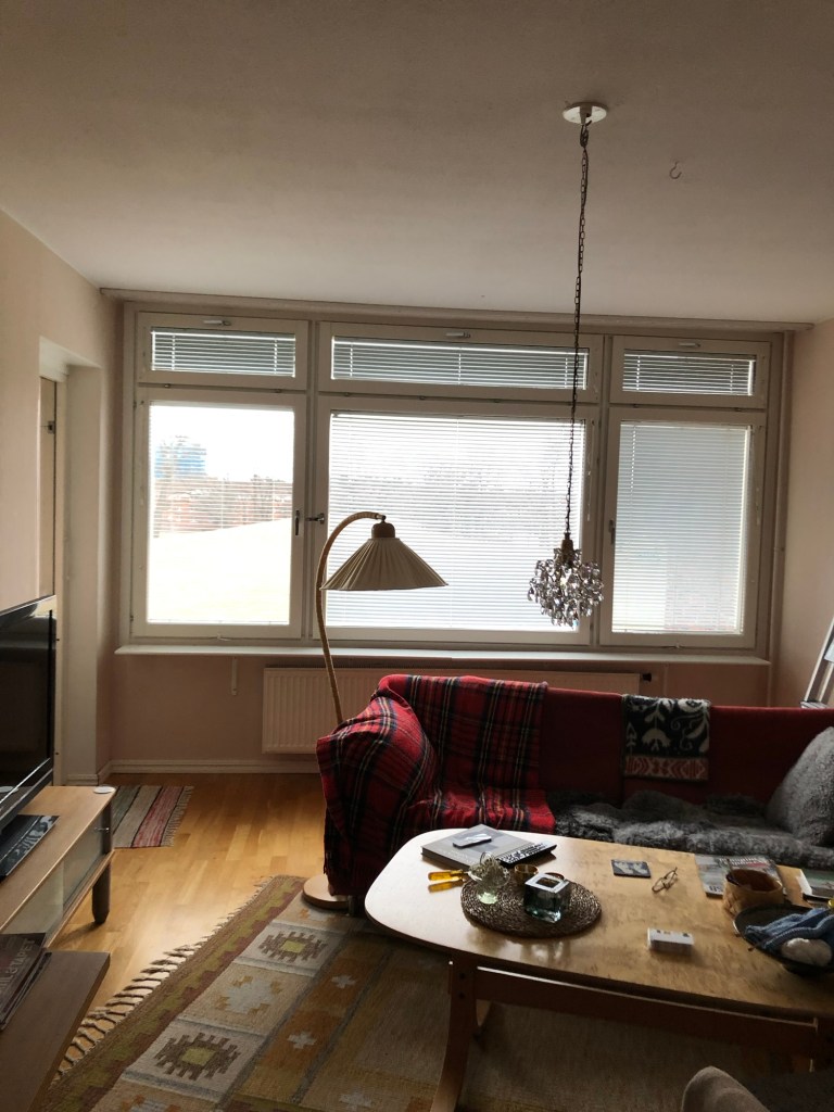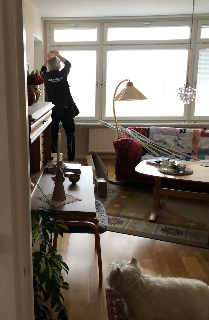 I går väntade vi på nya persienner, plockat undan blommor och gardiner…