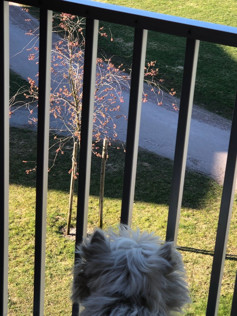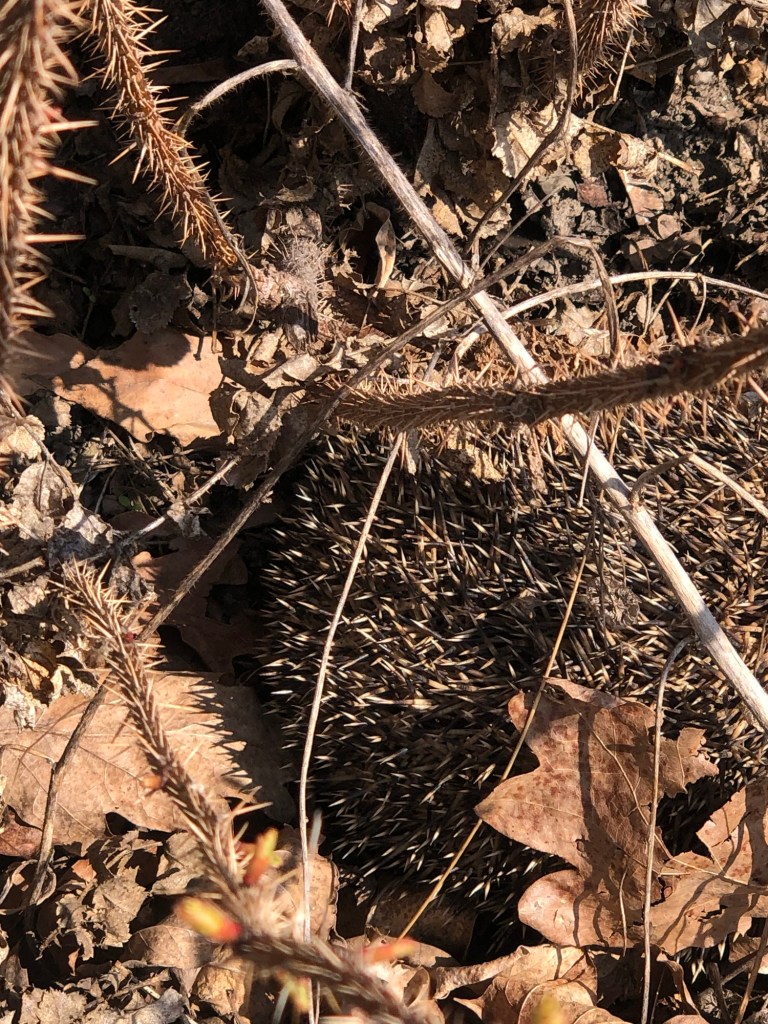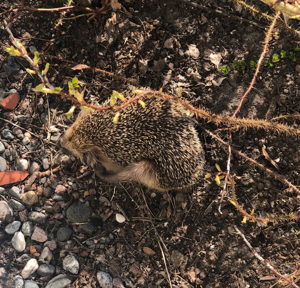 Milou skällde och jag tittade länge innan jag såg igelkotten,den låg alldeles stilla i solen 🌞 utanför balkongen.