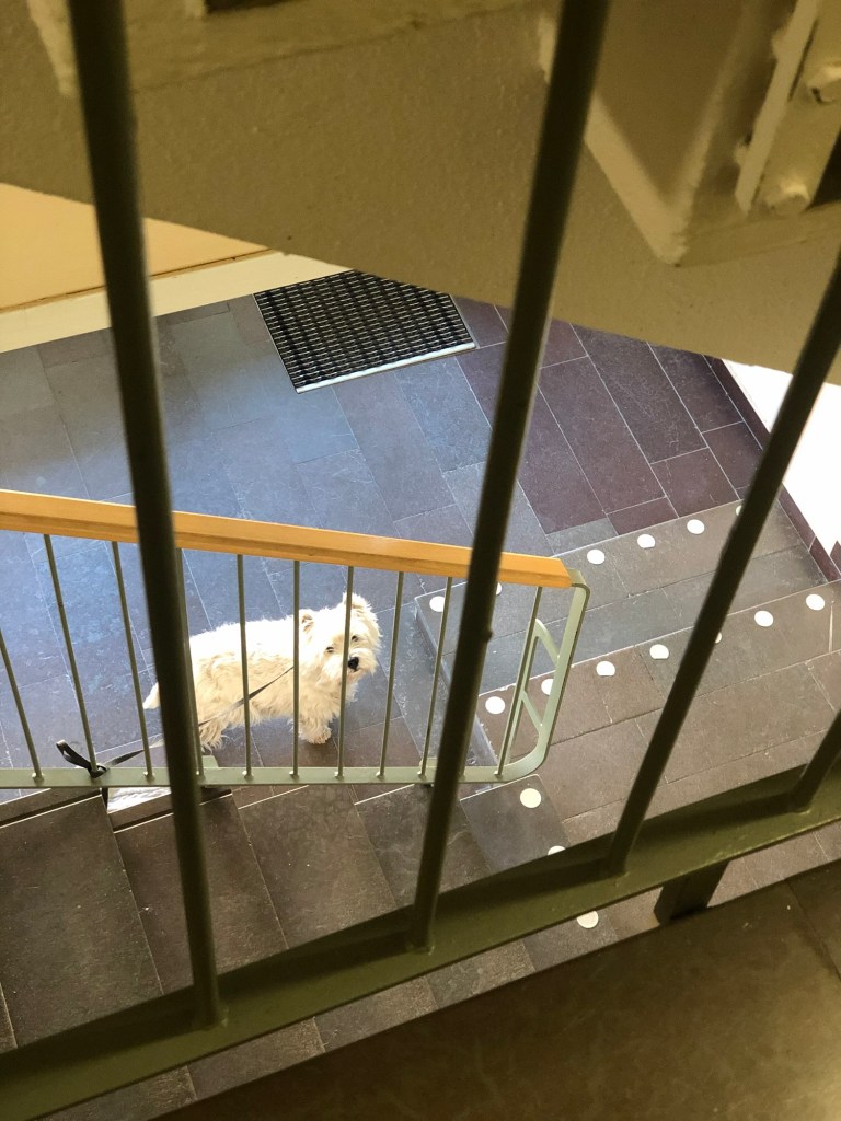 Milous ”kompis” som han släpat ut på balkongen – de hjälps åt att vakta utanför balkongen…