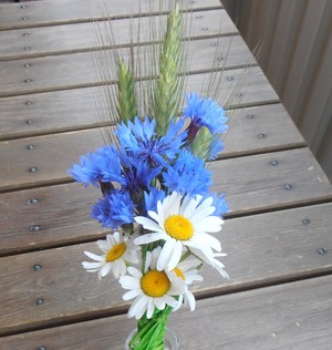 Jag tar med blåklinten som jag plockade igår..