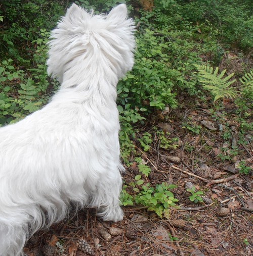 Där hade vi gjort en bana i skogen, och den gick rakt under tvättlinorna.