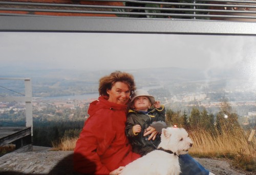 Lotta ,Carl,moster Sonja, mamma, jag och hunden Philip.