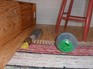 Harry har fått rent i buren – nu får han släpa in bädden i sitt hus