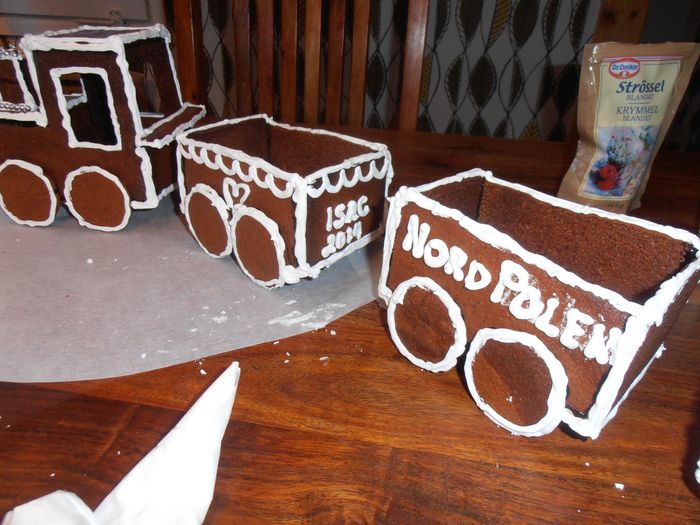 Vi pysslade och jag var barnvakt- då passade vi på att sätta färg på tåget – silverkulor och strössel