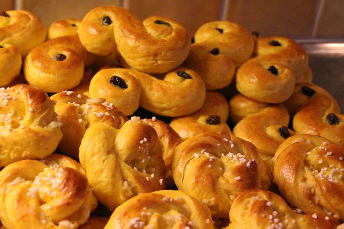 Goda saffransbullar med mandelmassa och russin.
