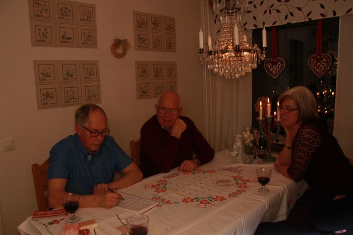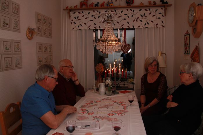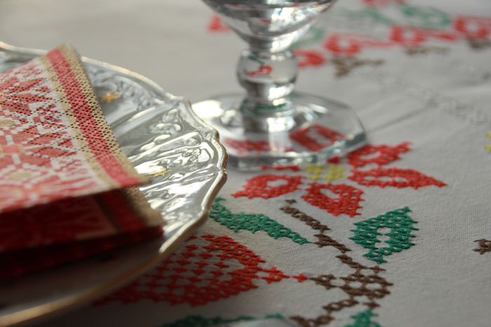 Jag har dukat med mormors julduk i korsstygn och mammas servis….