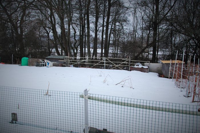 Högt staket ska hindra hjortar…. men vi såg massor av spår i snön.