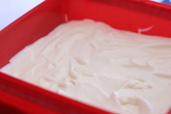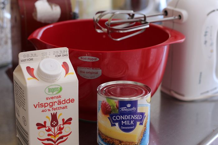 Häll smeten i en form – in i frysen några timmar !