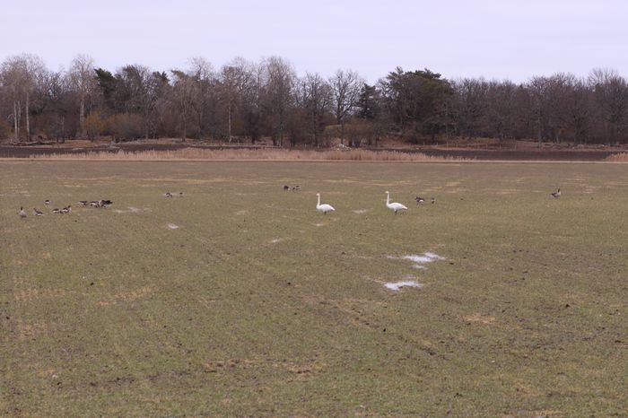 Vi måste stanna vid vägen och beundra sångsvanar och grågäss