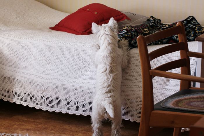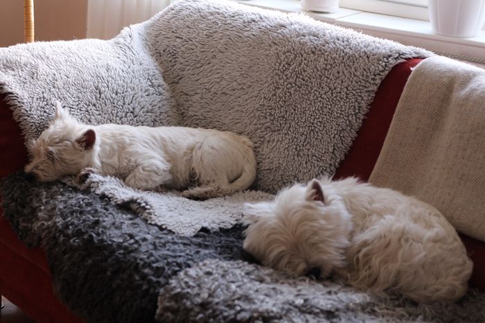 Ankorna ligger på sängen på Elis filt…