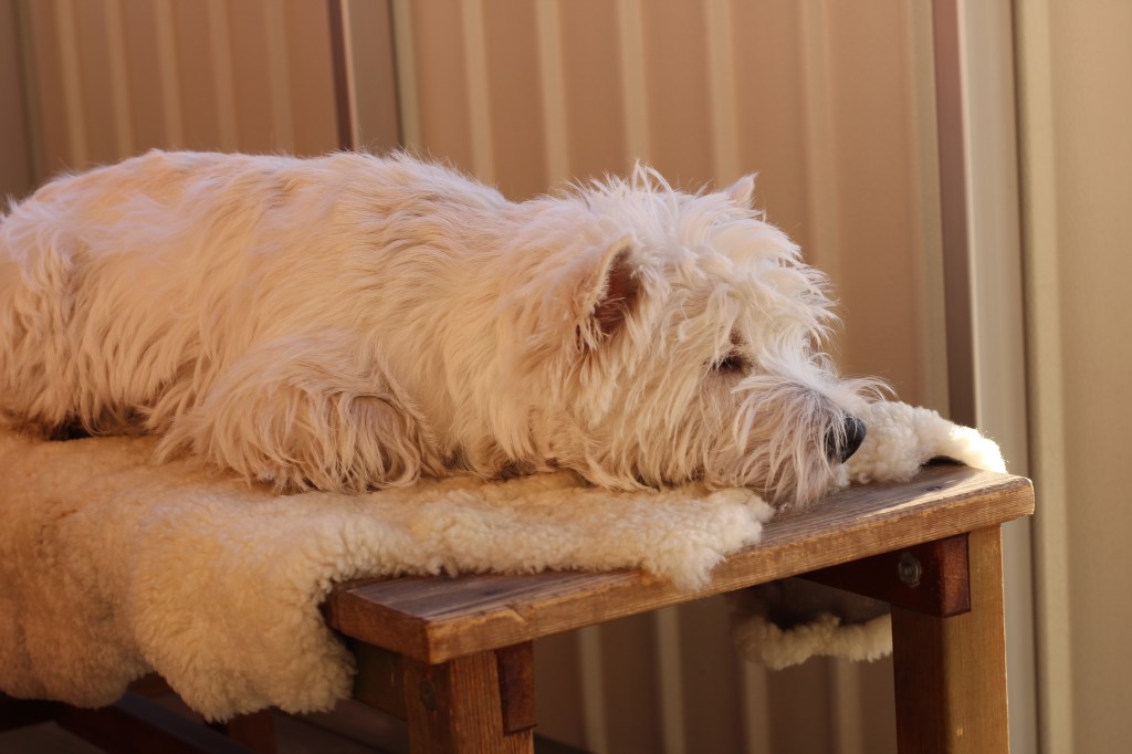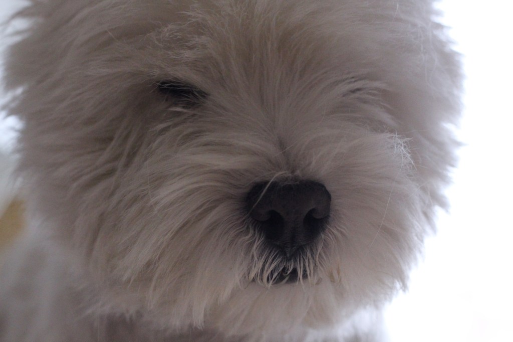 Tråkig dag hälsar Elis – men matte tycker det är roligt när trimningen går bra… Är så nöjd med huvudet på sötnosen ❤
