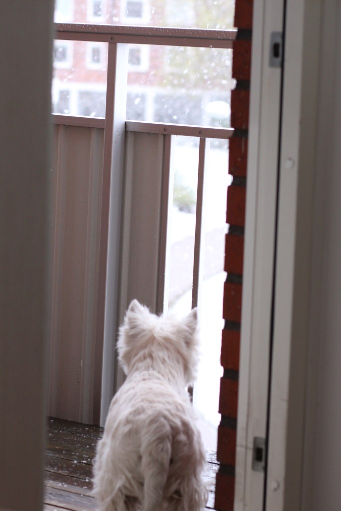 Det var igår vi fick besök av Milou som inte bestämt sig för att vara ute eller inne …..