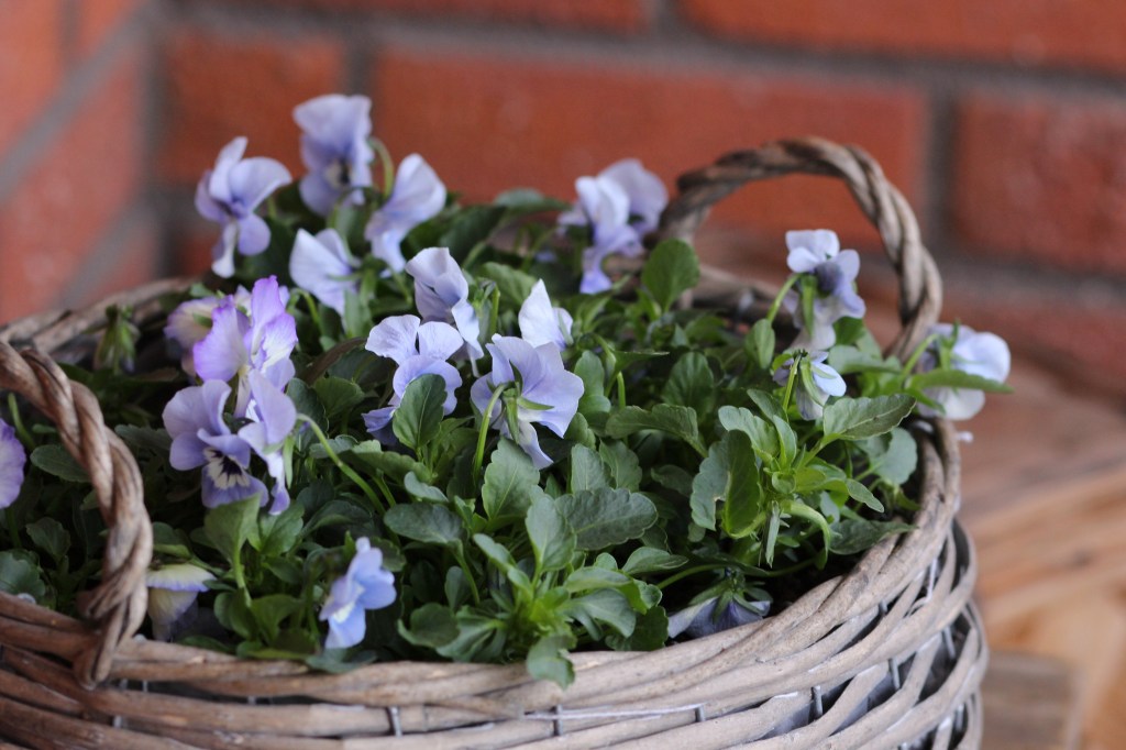 Ser ni vänner – kassen är fylld med små blå mini penséer.