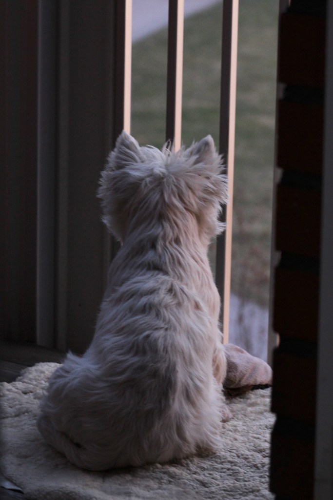 Dottern handlade till oss och vi möttes utanför affären. Jag väntade utanför med två små vita.
