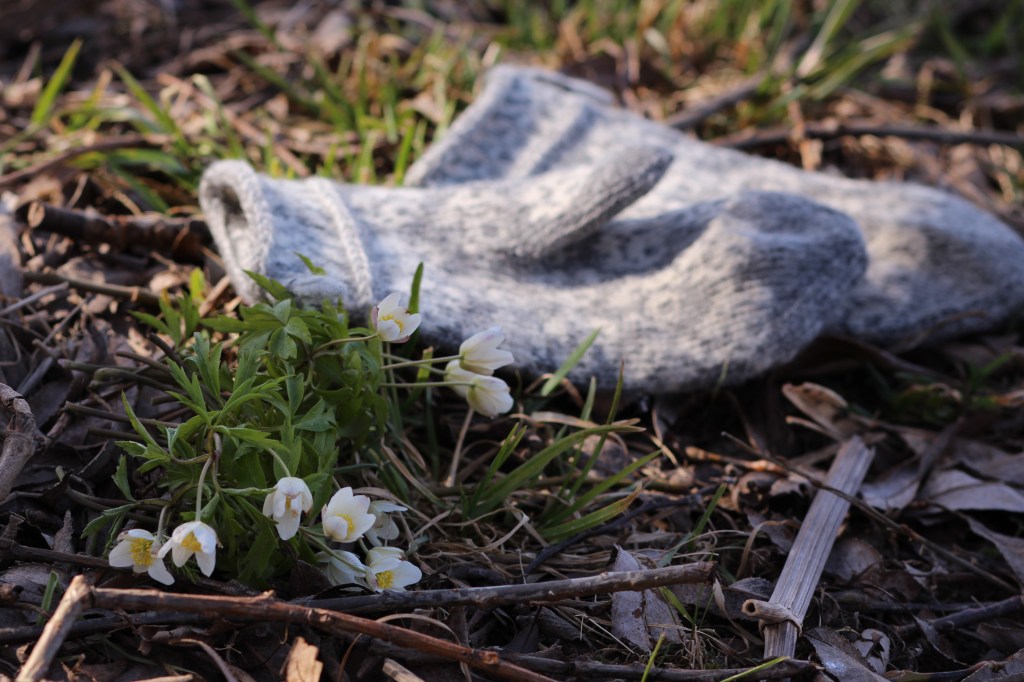 Hurra- nu har vi hittat första vitsippan 1 april 2020