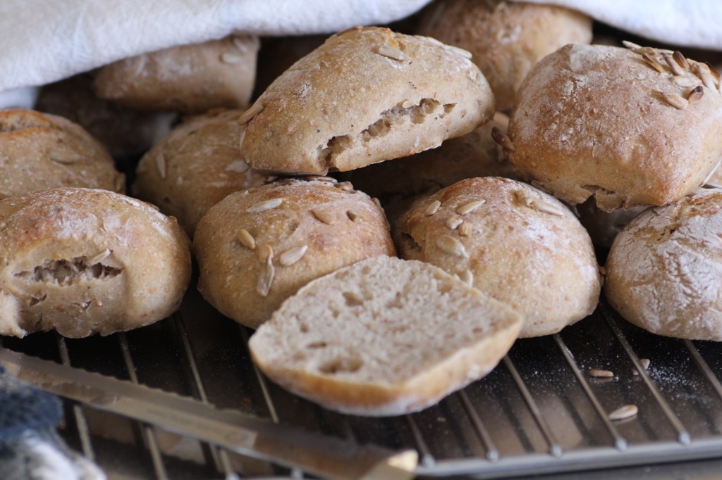 Mitt andra surdegsbak vänner – jättegoda frallor,blev så nöjd!