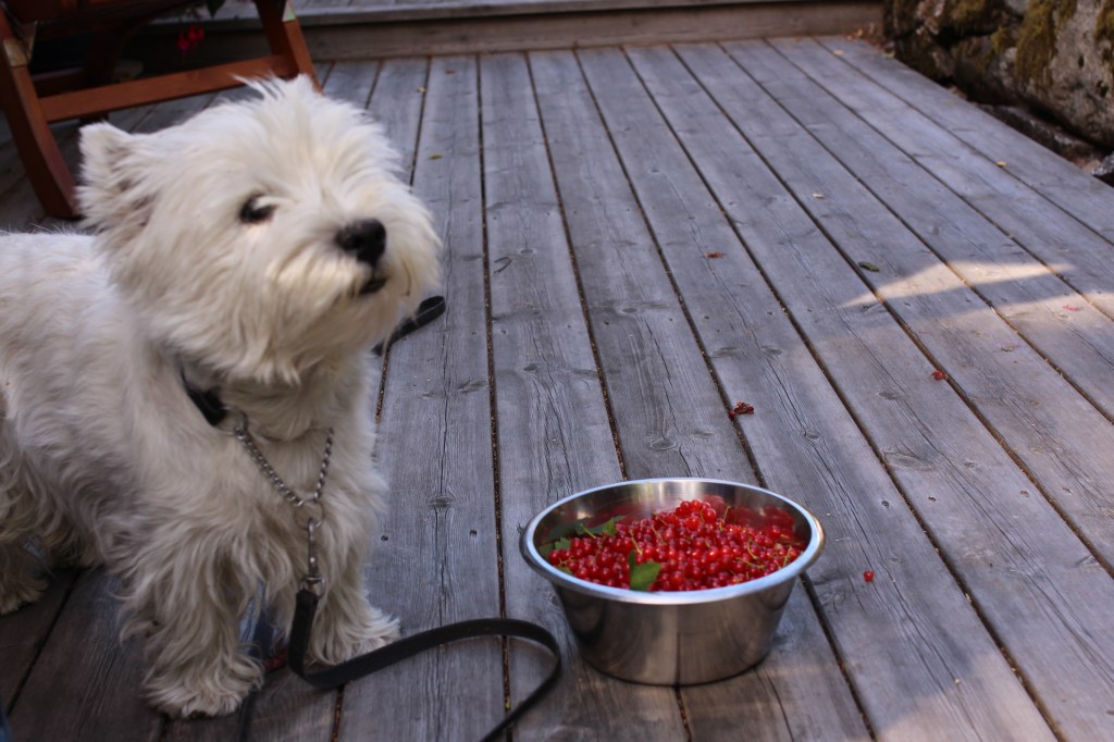 Två burkar med vinbär till oss och det finns mer att plocka – otroligt vad bär det är i år !
