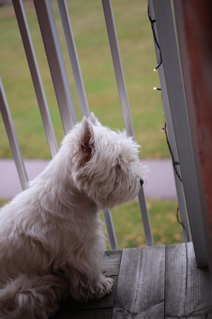 Ja ,vi tänkte göra klart med trimningen ,men det regnar så Elis är för våt om magen och benen.