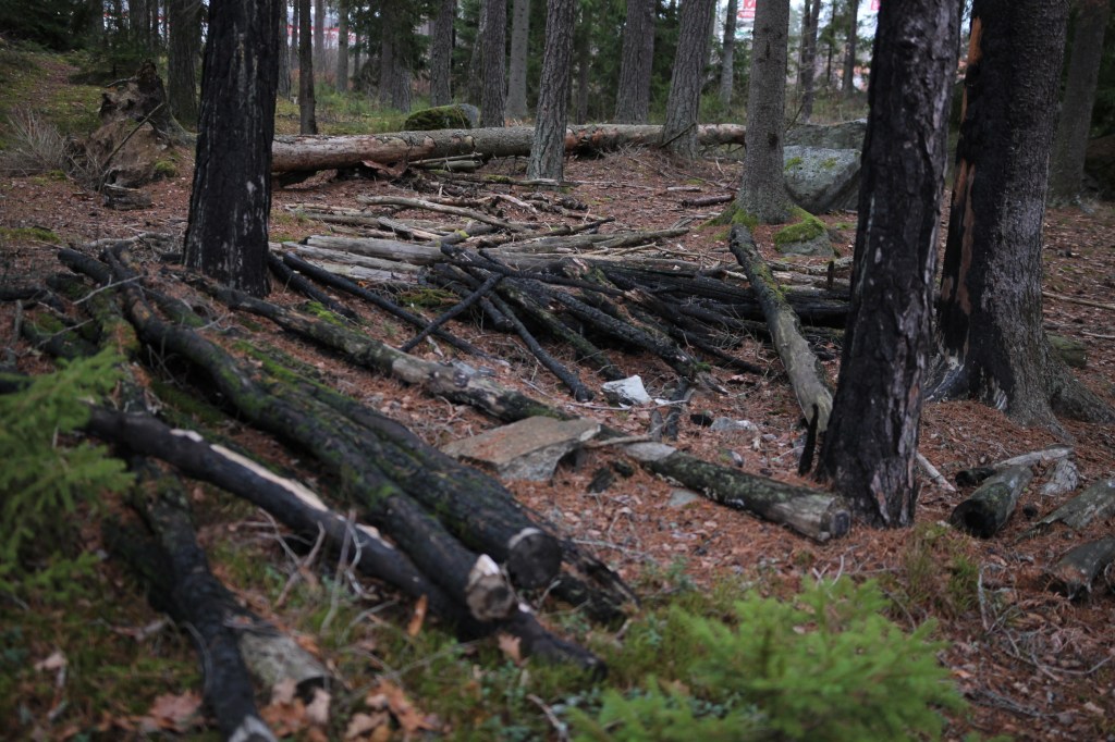 Vi går i cirklar genom kojans skog – nosar och letar på alla stubbar !