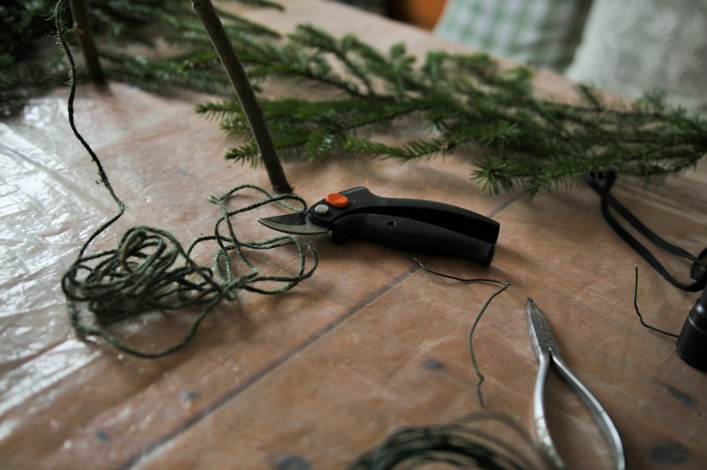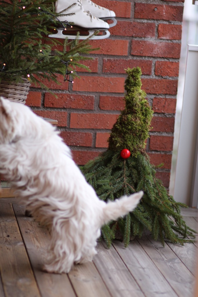 Vi försöker att göra en tomte av granris – plockade 3 pinnar på morgonpromenaden , granris hämtade vi i veckan.