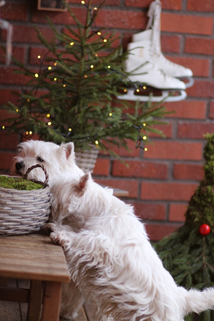 Idag har vi varit i skogen och hämtat lite granris och skridskorna har vi hängt upp på balkongen…