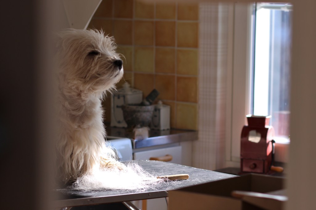 Nu är det Elis tur att bli trimmad… och jag har prickat in bästa trimvädret !!