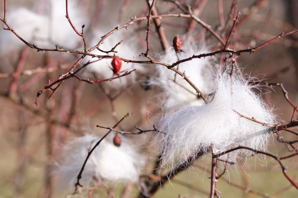 Hårtussarna får fåglarna -snart dax att bygga bon med ullbäddar.