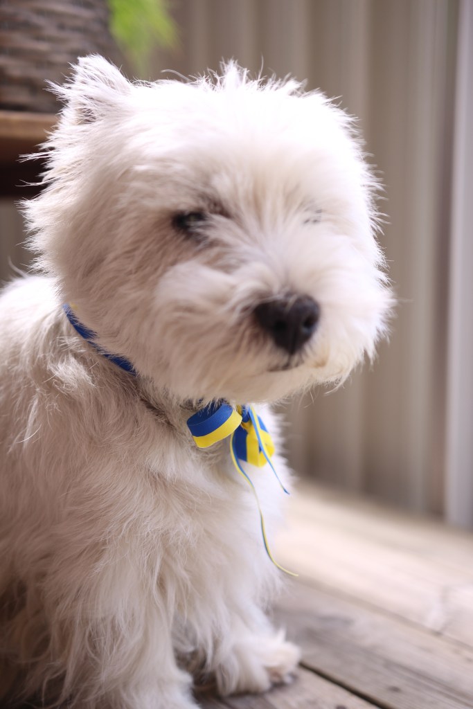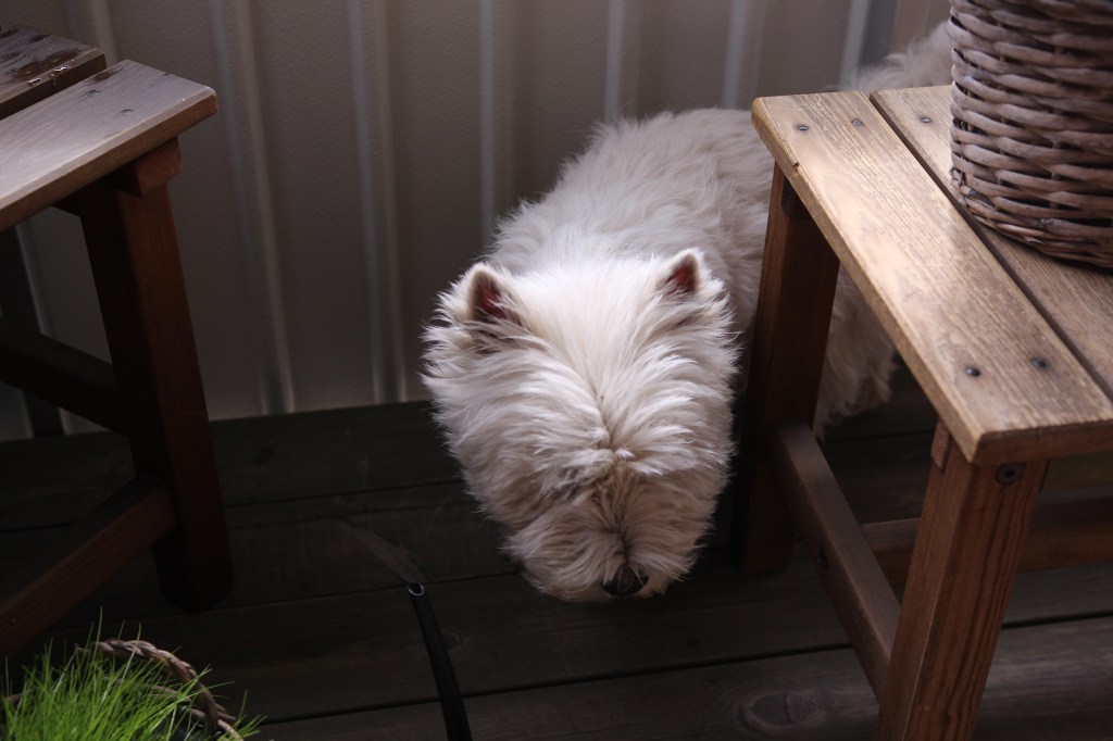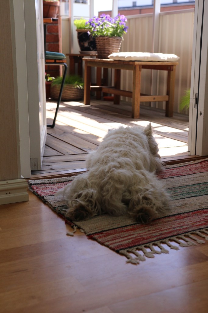 Nu är värmen här och vi har flyttat in allt i rummet ….nu är det trätrallen som måste såptvättas !