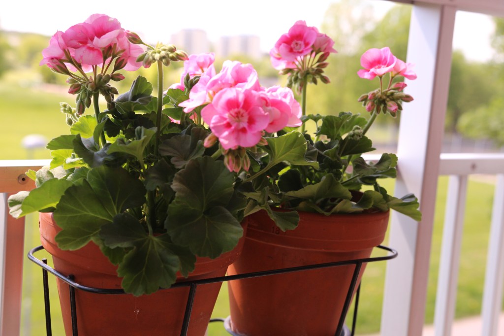 Bästa utsiktsplatsen, har fått pyntat med pelargoner ….blir lite skugga och skymmer inte utsikten.