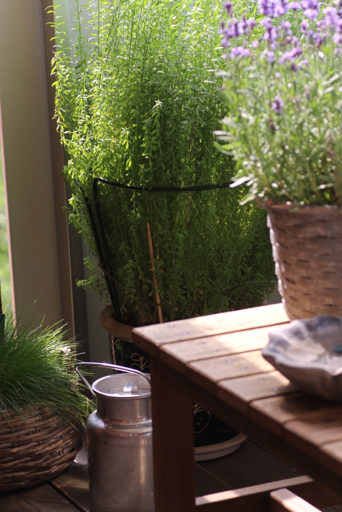 Så nu börjar vi med att plantera en ny Årets pelargon – tur jag hade en på balkongen som vi tog med oss.