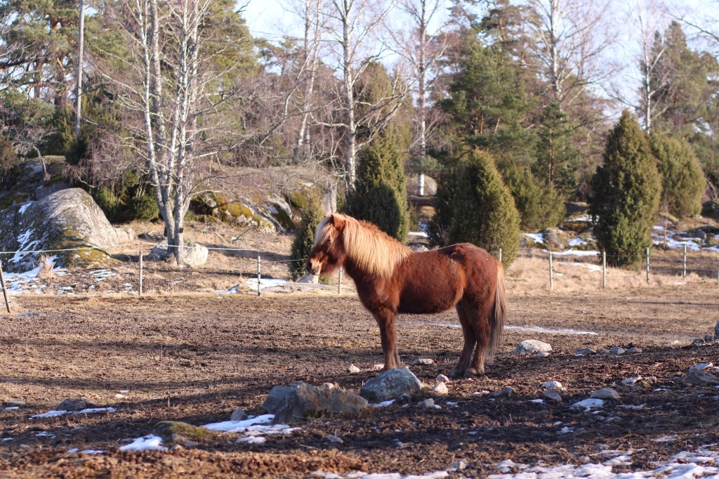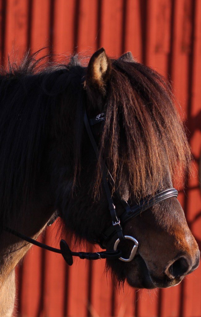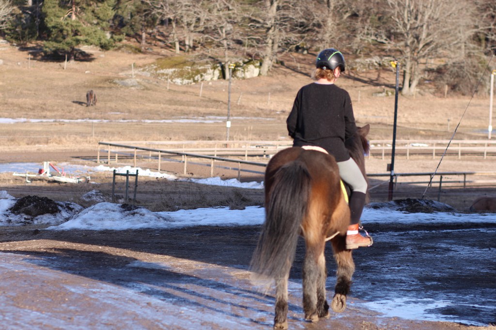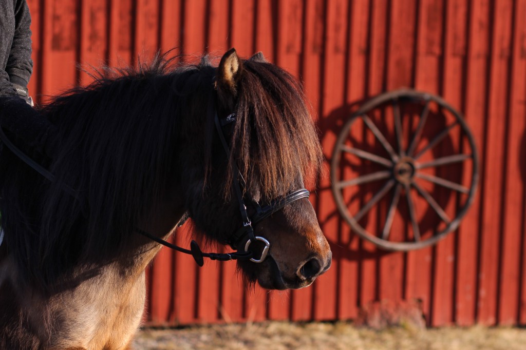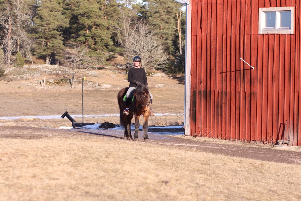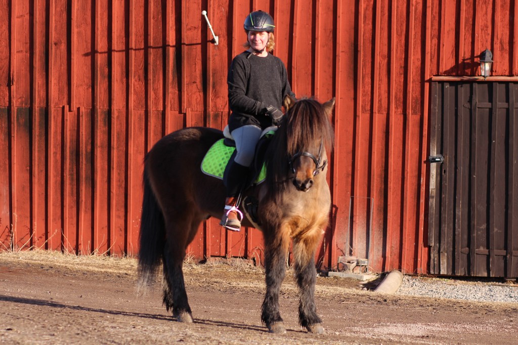 Vi fick följa med dottern till stallet – hon hjälper till att rida och motionera en 16-åring islandshäst.