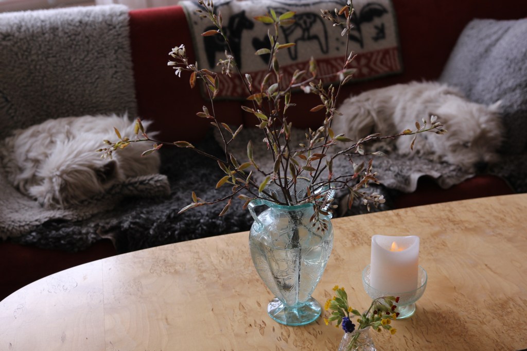 Morgonens bukett går i rosa och vita vitsippor 🙂