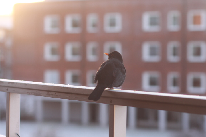 Dagens utskällning av de små vita…herr koltrast är sugen på äpplen och det är en kall morgon -12 ❤