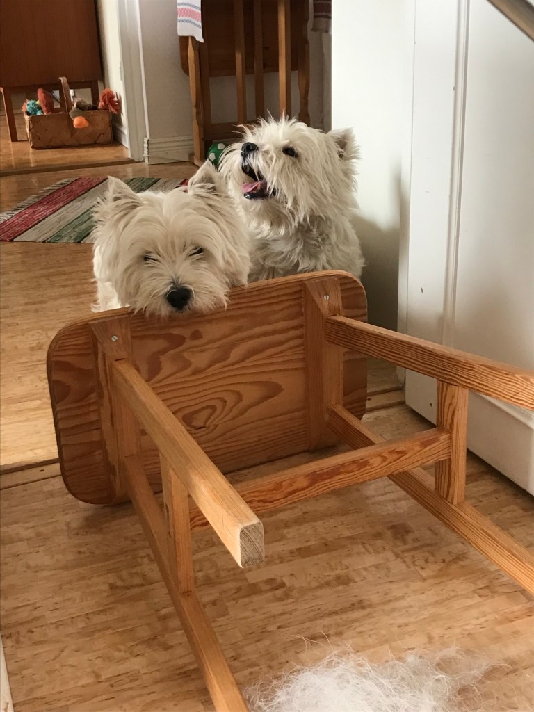Vi väntar på maten – köket är fullt av hår, så idag vänner får vi äta i matrummet💕🐾