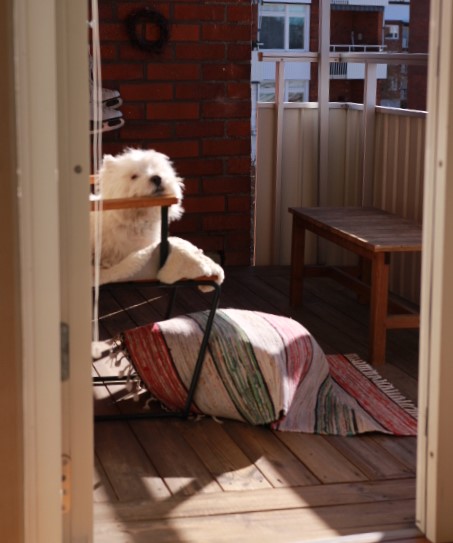 Så vi fick lösa det med en Puff – lägga på en trasmatta, så det blir halkfritt 🙂