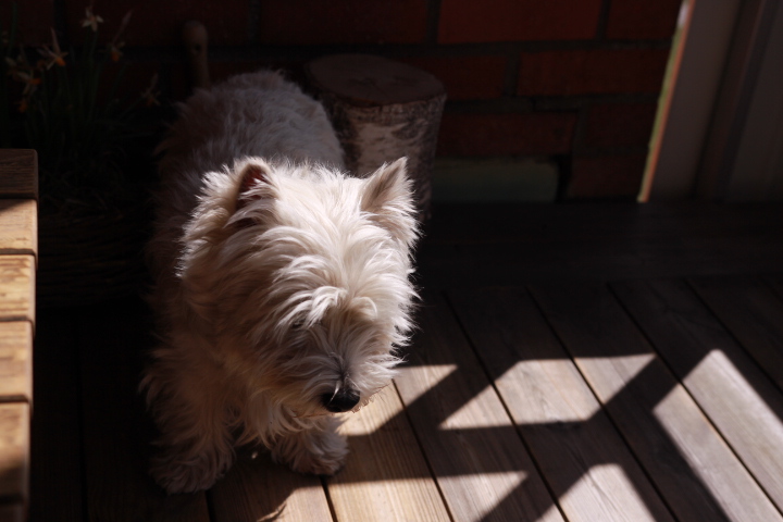 En liten vit tuss… Nej vänner, jag har inte några blommor på balkongen än…det står liksom stilla med balkongen i år !