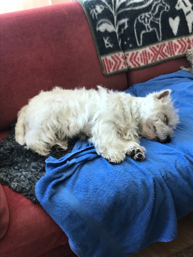 Måste vila lite – blev så trött att bli ompysslad av både mormor och Elis. Mormor torkade med handdukar och Elis slickade av våta pälsen🐾 Gott samarbete 💕🐾hälsar Milou.