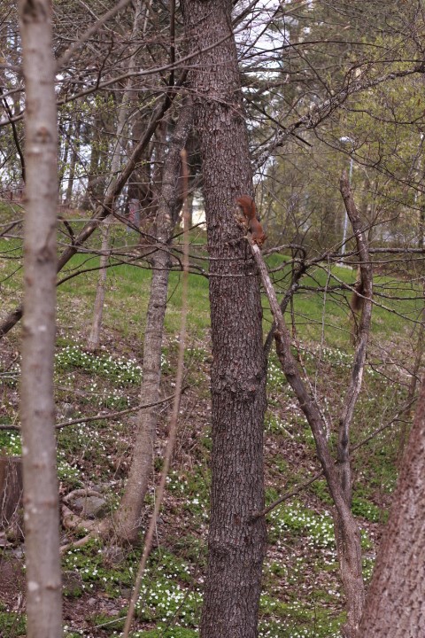 Det var 3 ekorrar i trädet, men bara en blev med på bild !