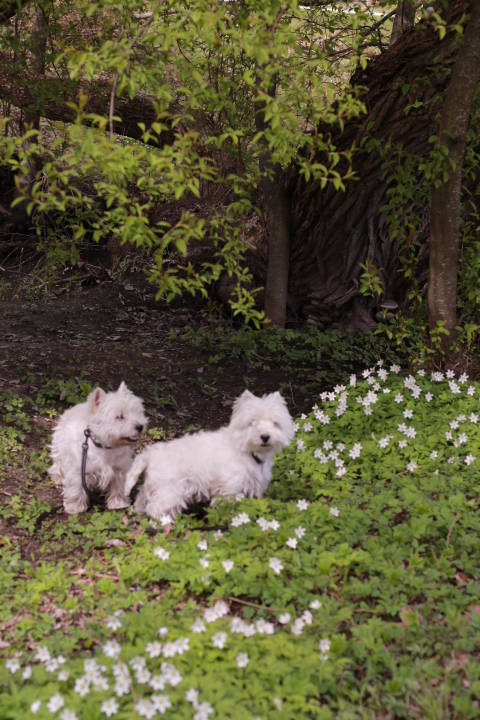 Det går i snigelfart 🌿💚 när två små vita går på morgonpromenad💕 Underbar morgon i maj 🌞