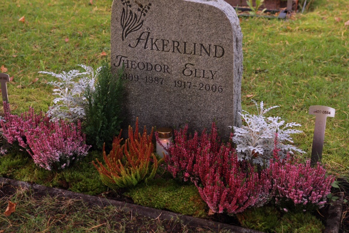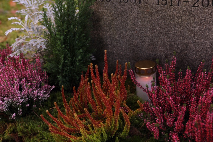 Höstblommor – Ljung i olika färger,cypress,grön mossa.Silvereken är fin från sommaren,får vara kvar.