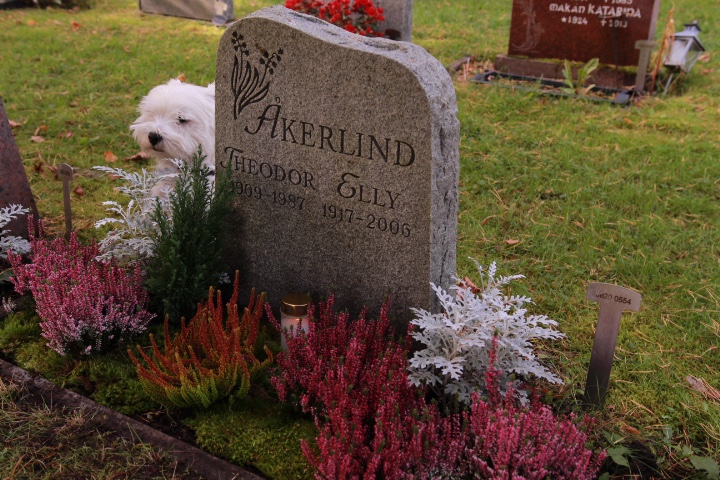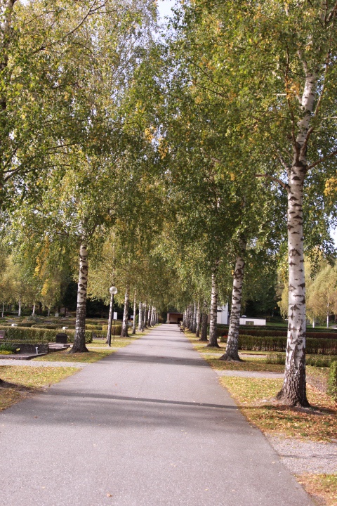 Vi är på kyrkogården och några gula blad täcker marken🍂