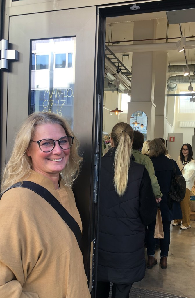 Lång kö,men doften av nygräddade kanelbullar gör oss glada 😊