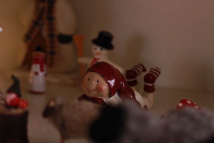 Domherrarna och lilla tomten som gungar i ett nötskal.