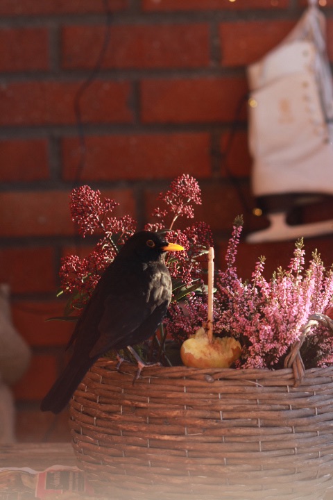 Äppelskruttet, mossa och ljungen i korgen rivs upp ! ( inget bordskick alls )