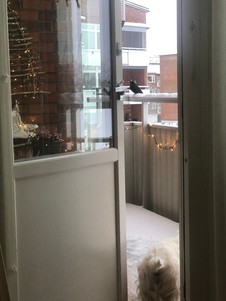 Nyårsafton och jag delar balkongen med ”koltrasten” som har bestämt att flytta hit.