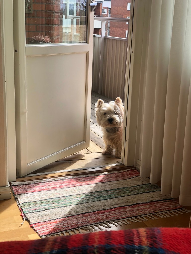 Hallå,nu kom solen! Hurra, äntligen en promenad hälsar Milou – Elis och mormor är startfärdiga…