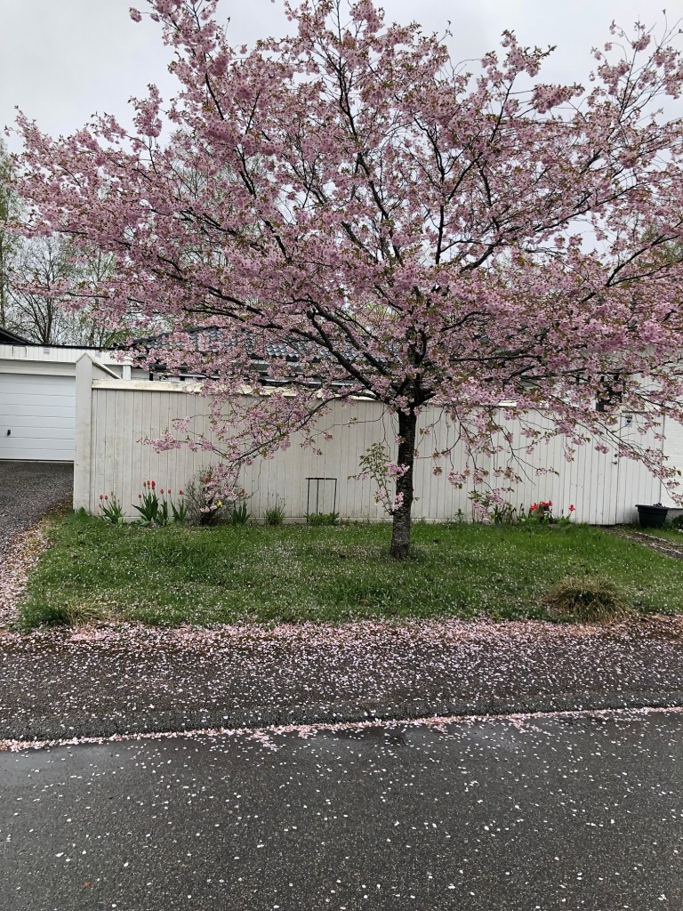 På grannens gata snöar det körsbärsblommor 🌸