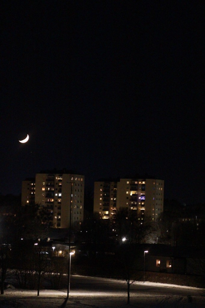 Och månen försvinner snart bakom husen…vid 21 tiden